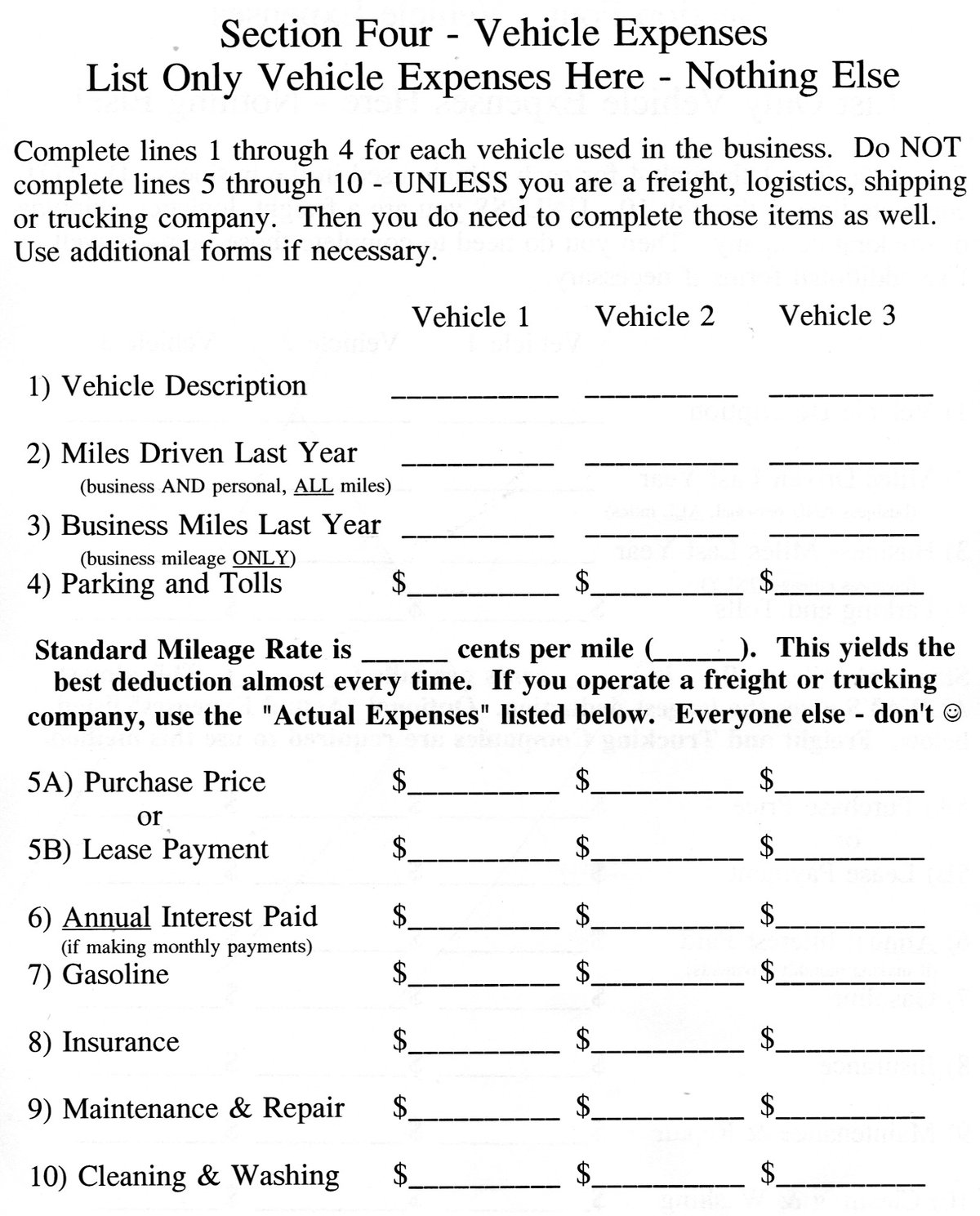 7 - Vehicle Expense Worksheet - This is already part pf the income / expense statements listed above (5 and 6), if you need additional stand-alone copies use this - PDF (Page 1) JPG (Page 1)